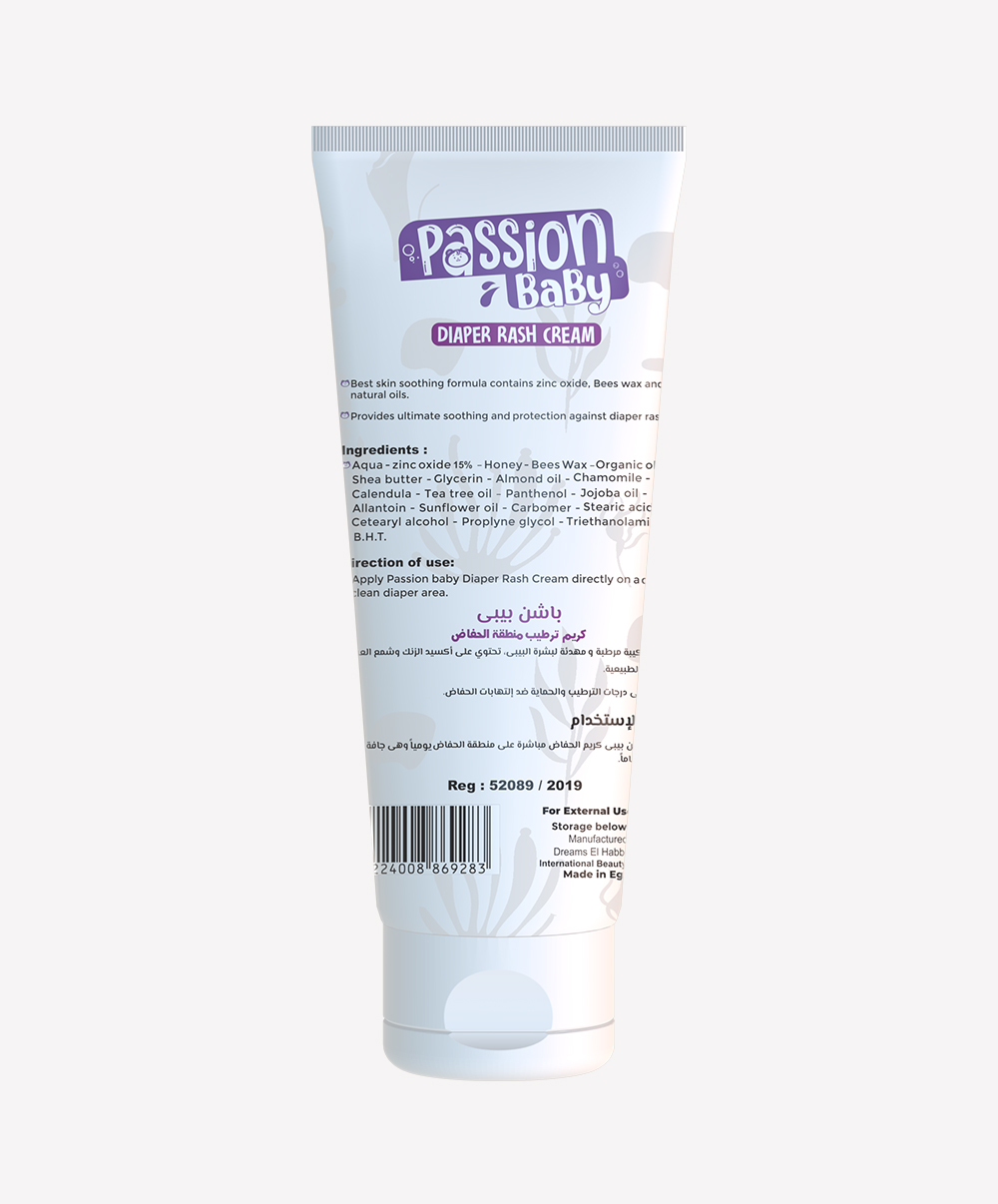 The most important benefits of Passion Baby diaper cream Daily protection against diaper rash. It forms an insulation protective layer on the baby’s skin to prevent recurrence of infections. Moisturizes baby’s skin and makes it soft and healthy. Stimulates healthy skin healing and cell regeneration. Ideal for use with daily diaper changes. Light and fast absorbing formula. Free of parabens, sulfates and mineral oils.